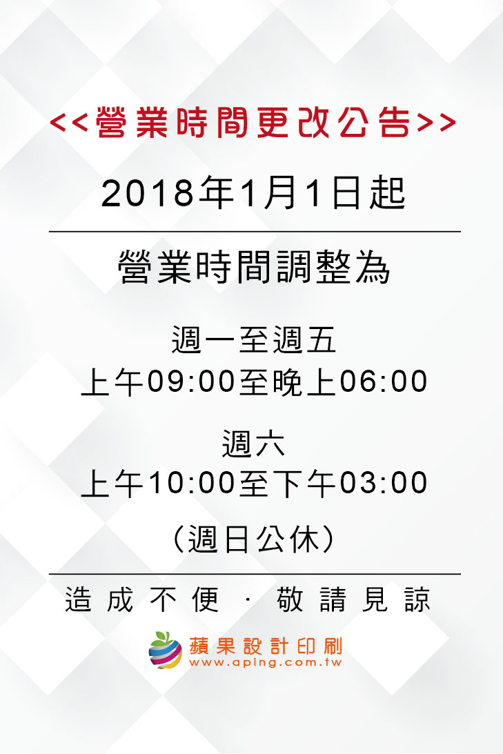 1061230-營業時間調整公告-網頁用-mob Published 30 12 月, 2017 at 729 × 1093 in 1061230-營業時間調整公告-網頁用-mob ← Previous Next →